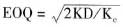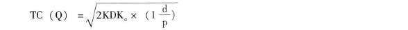 當F1、K 、D 、U 、F2 、Kc 為常數時,TC 的大小取決于Q 。為了求出TC 的極小值,對其進行求導演算,可以得出經濟訂貨基本模型,公式如下: