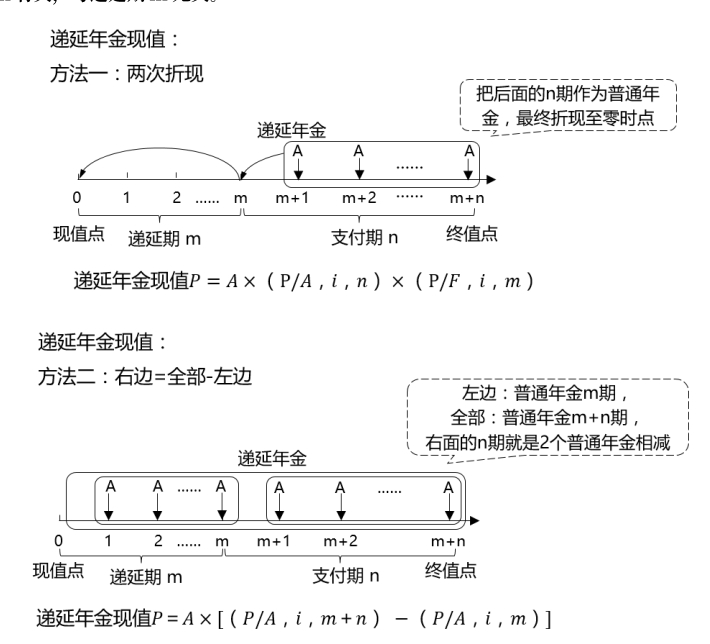 例如,從第4年開始,每年年末支付,m=4-1=3,每年年初支付,相當于第3年年末支付,m=3-1=4-2=2。