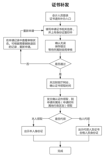 1.業(yè)務(wù)流程。會計人員登陸“山東會計信息網(wǎng)-會計人員信息采集-證書補發(fā)申請”填報信息,并向會計信息采集地財政部門提交書面材料,進(jìn)行現(xiàn)場審核。區(qū)縣財政部門將審核后的名單和材料匯總后報市財政局,逐級報送至省財政廳統(tǒng)一補辦。