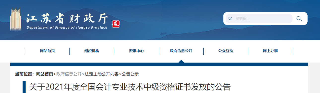 江蘇省2021年中級(jí)會(huì)計(jì)師考試合格證書(shū)領(lǐng)取通知