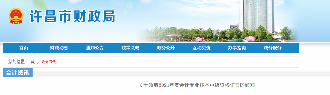河南省許昌市2021年中級(jí)會(huì)計(jì)師證書領(lǐng)取通知
