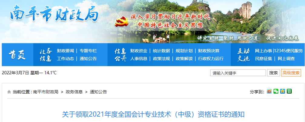 福建省南平市2021年中級會計師證書領(lǐng)取通知