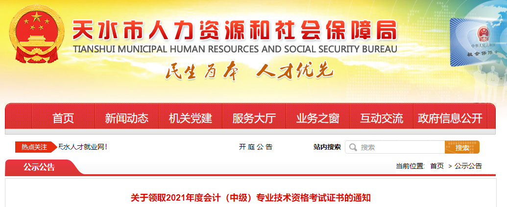 甘肅省天水市2021年中級會計(jì)師證書領(lǐng)取通知