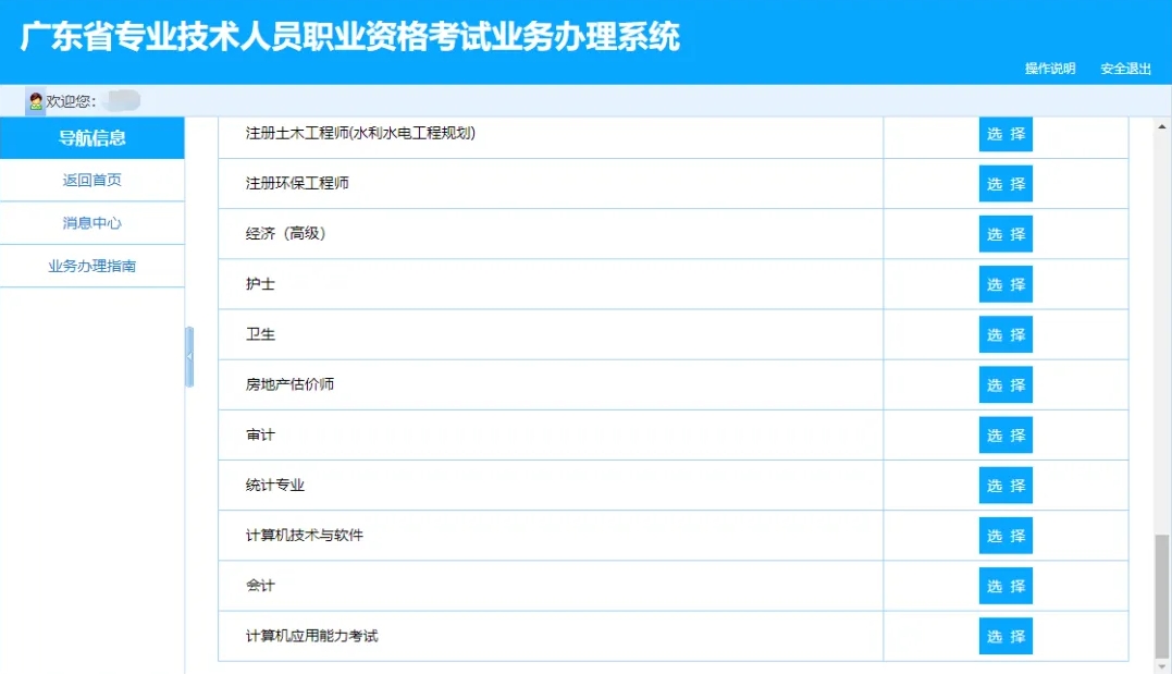 2.點擊右側下拉菜單,拉到最后會計考試項目,點擊“選擇”項。