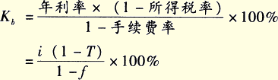 式中:Kb表示銀行借款資本成本率;i表示銀行借款年利率;f表示籌資費用率;T表示所得稅率。