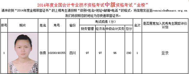 2014年中級(jí)會(huì)計(jì)職稱金榜第一名 | |