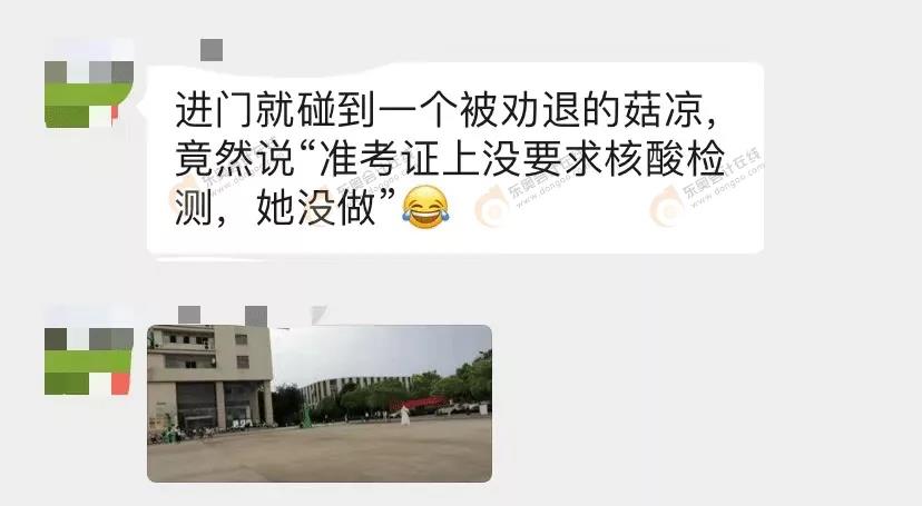 根據(jù)考生反饋,考場(chǎng)外有考生因?yàn)闆]有做核酸而被勸退了!