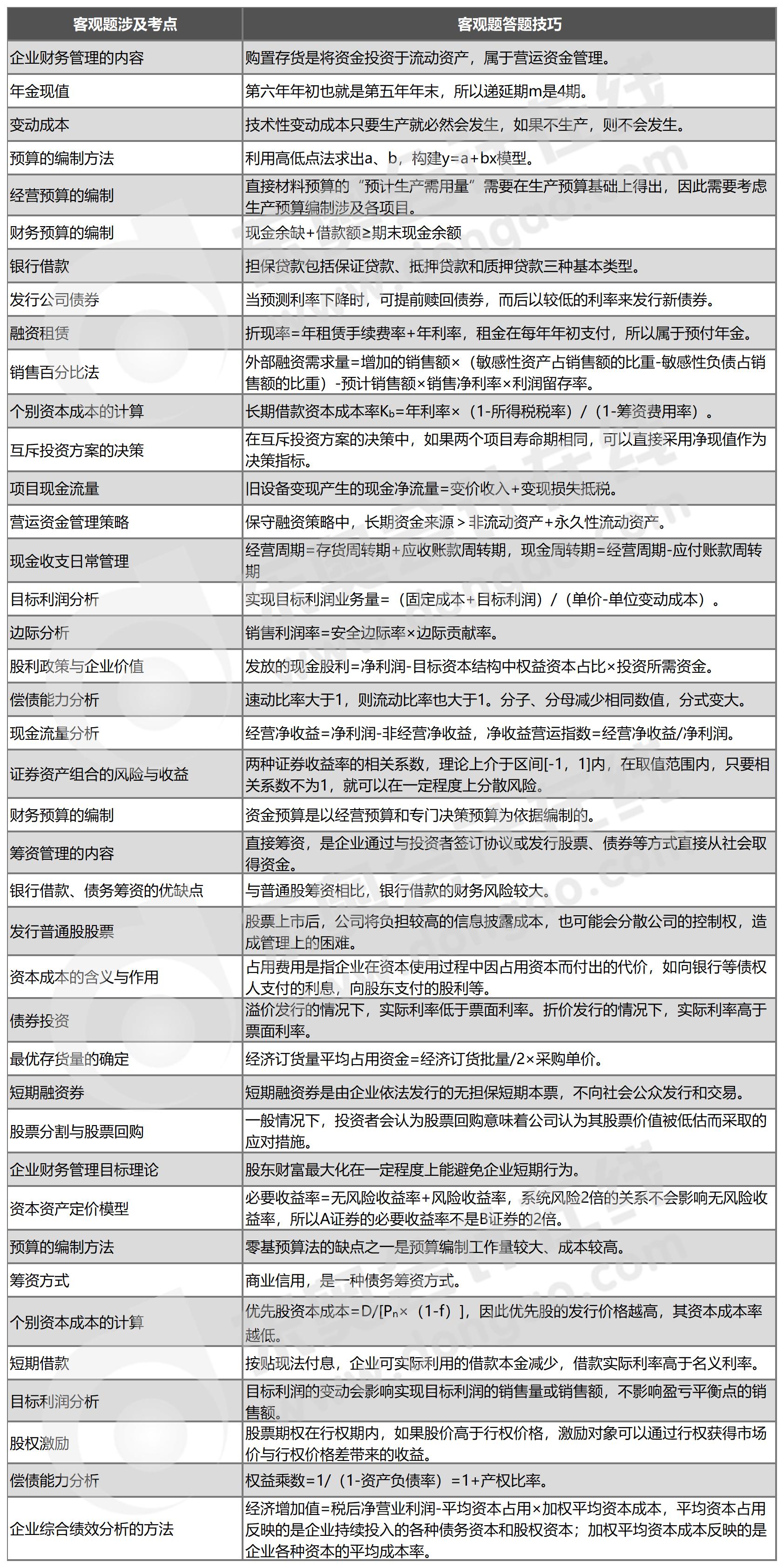 財務(wù)管理客觀題答題技巧