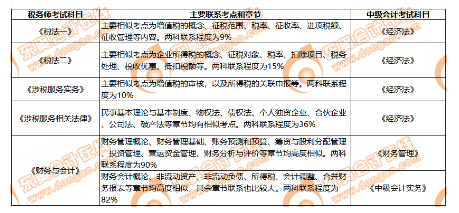 如圖所示,便是中級會計職稱考試與稅務(wù)師考試在科目上具備的知識關(guān)聯(lián)性。