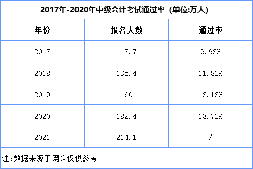 以下為近幾年中級會計考試的通過率,由下圖可知中級會計考試的通過率并不高。