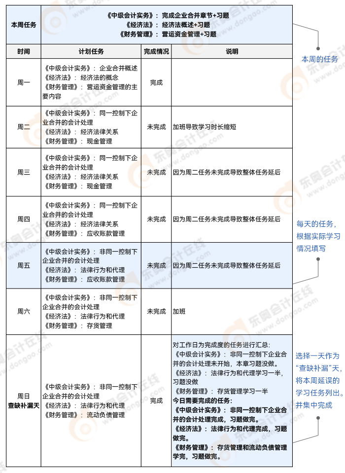 中級會計一周備考計劃