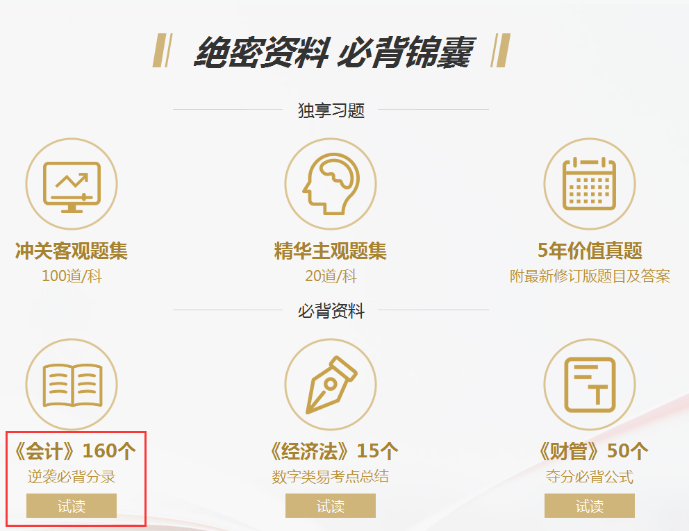此外,《財(cái)務(wù)管理》50個(gè)奪分必背公式、《中級(jí)經(jīng)濟(jì)法》15個(gè)數(shù)字類易考點(diǎn)總結(jié),盡在東奧中級(jí)會(huì)計(jì)逆襲提分班!考生們可以進(jìn)入“東奧中級(jí)逆襲提分班”,找到“絕密資料 必背錦囊”點(diǎn)擊“試讀”,了解更多中級(jí)會(huì)計(jì)干貨內(nèi)容!前往試讀>>