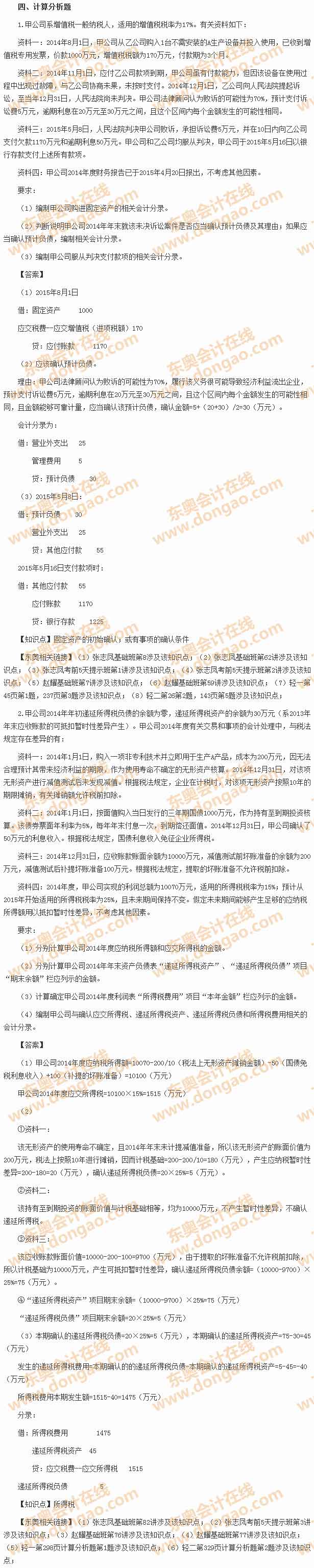 2015中級(jí)會(huì)計(jì)職稱《中級(jí)會(huì)計(jì)實(shí)務(wù)》考試真題及答案解析