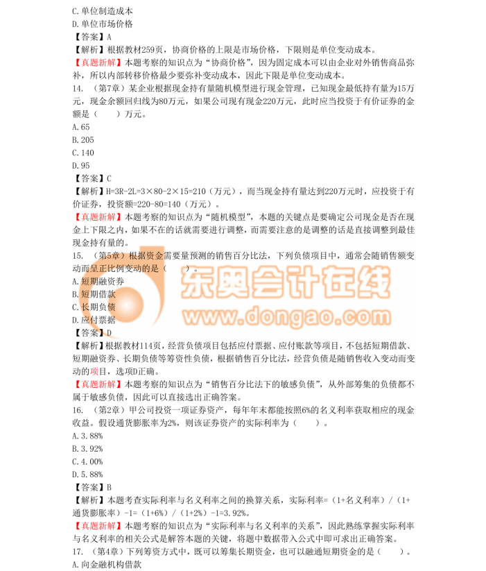 2016中級會計職稱《中級財務(wù)管理》真題及答案解析(考生回憶版)