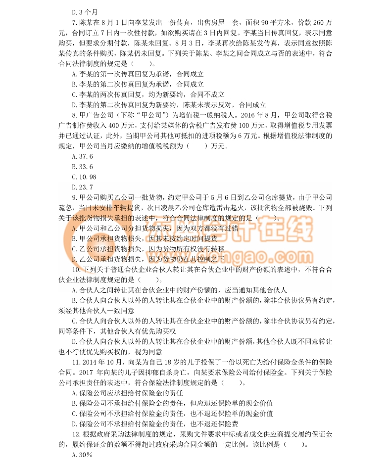 2017中級會計職稱《中級經(jīng)濟法》真題及答案解析(考生回憶版)
