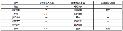(4)根據(jù)銷售百分比法計(jì)算的2020年年末資產(chǎn)、負(fù)債各項(xiàng)目占銷售收入的比重?cái)?shù)據(jù)如下表所示(假定增加銷售無(wú)需追加固定資產(chǎn)投資):