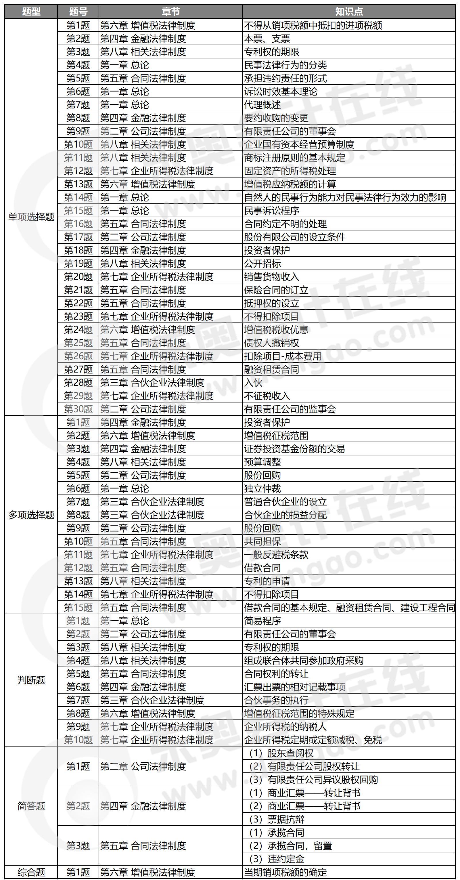 (2)考查知識點基礎(chǔ)、常規(guī)。各章涉及的知識點都是課件和圖書中常規(guī)知識點。需要說明的是,企業(yè)所得稅中一個多選題不太常規(guī),考查“一般反避稅條款”,但是并不影響通過考試,而且根據(jù)常識大概能夠判斷出來。