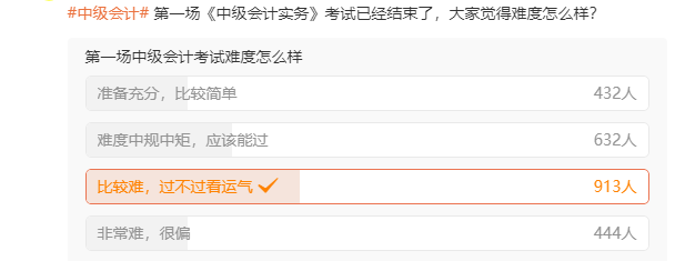大部分考生都認(rèn)為《中級會計實務(wù)》>《財務(wù)管理》>《經(jīng)濟(jì)法》,今年中級會計實務(wù)考試已經(jīng)進(jìn)行了兩個批次,各個批次的考試難度如何呢?小編進(jìn)行了投票調(diào)查,不知道屏幕前的各位考生是否認(rèn)同投票結(jié)果呢?