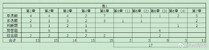 從黃潔洵老師整理的各章分值來看,本次考試考查的內(nèi)容是非常全面的,每一章節(jié)的分數(shù)都在10分以上,建議后面考試的考生好好學(xué)習(xí)相關(guān)內(nèi)容。
