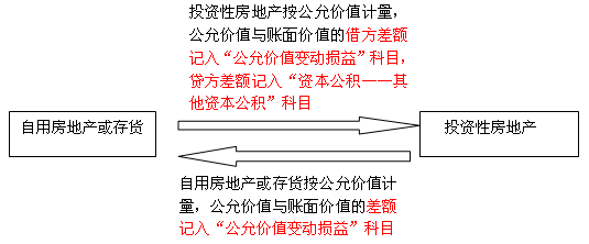 投資性房地產(chǎn)采用公允價值計(jì)量模式的房地產(chǎn)轉(zhuǎn)換如下圖所示: