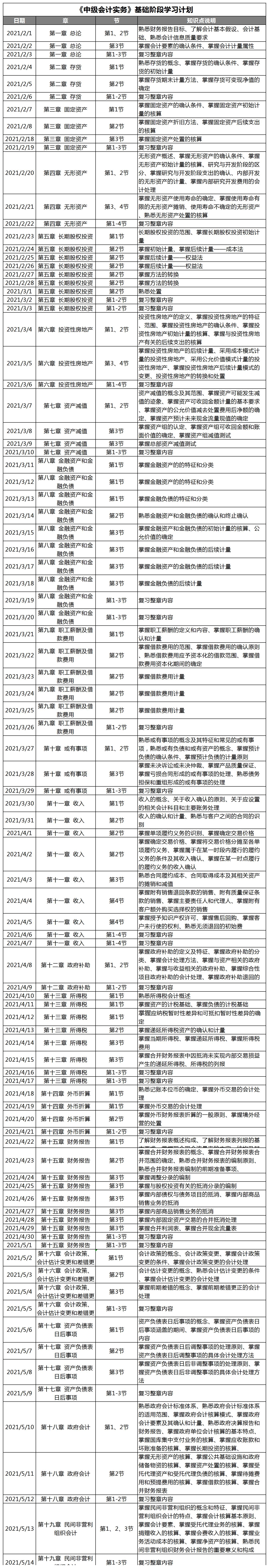 2021年基礎(chǔ)階段學(xué)習(xí)計劃(中級會計實務(wù))