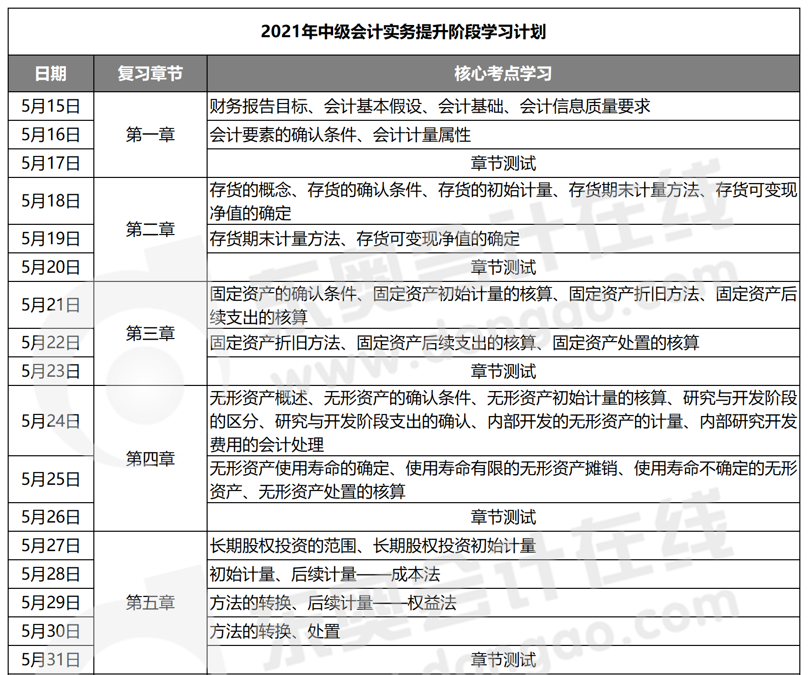 2021年中級會計師考試備考正在進行中,考生們都做好準備了嗎?為了讓大家提前做好各個階段的學習規(guī)劃,東奧教研團隊為大家整理了2021年《中級會計實務(wù)》科目的提升階段學習計劃,幫助大家合理規(guī)劃備考時間,一起來了解!